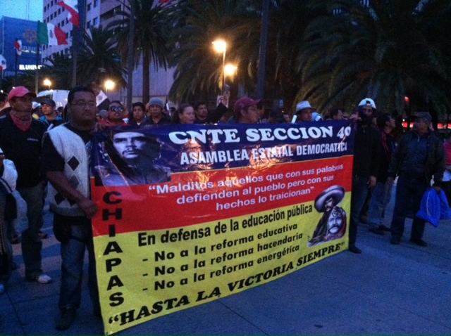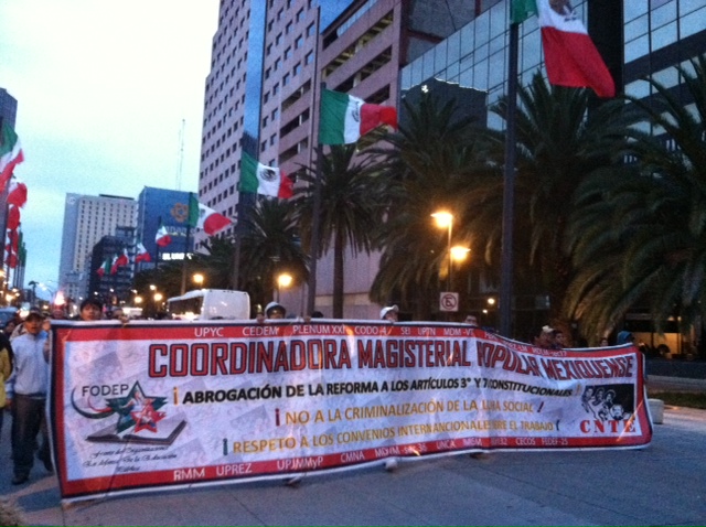 Acabo de publicar un artículo con Hilda Vázquez sobre la CNTE y el movimiento de los maestros mexicanos. El artículo, “La reforma educativa mexicana desde abajo,” aparece en español en Homozapping, y otra versión en inglés en el Boston Review. Aquí hay unas fotos de la megamarcha de la CNTE, desde la Estela de Luz hasta el Monumento a la Revolución, 15 septiembre 2013.